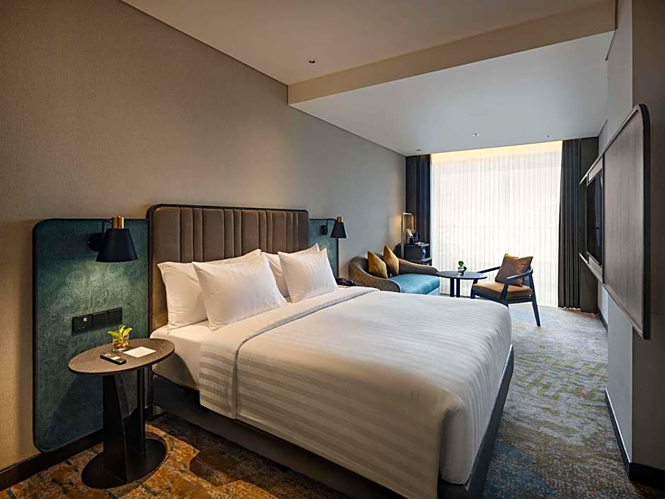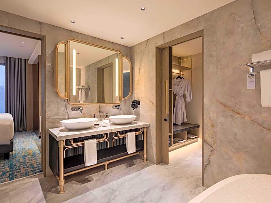 Providing free toiletries, this suite includes a private bathroom with a shower, a hairdryer and slippers. The suite provides soundproof walls, a tea and coffee maker, a seating area, a flat-screen TV, as well as city views.
