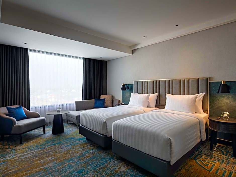 Featuring free toiletries, this twin room includes a private bathroom with a shower, a hairdryer and slippers. The twin room features a flat-screen TV, soundproof walls, a tea and coffee maker, a seating area as well as city views. The unit has 2 beds.